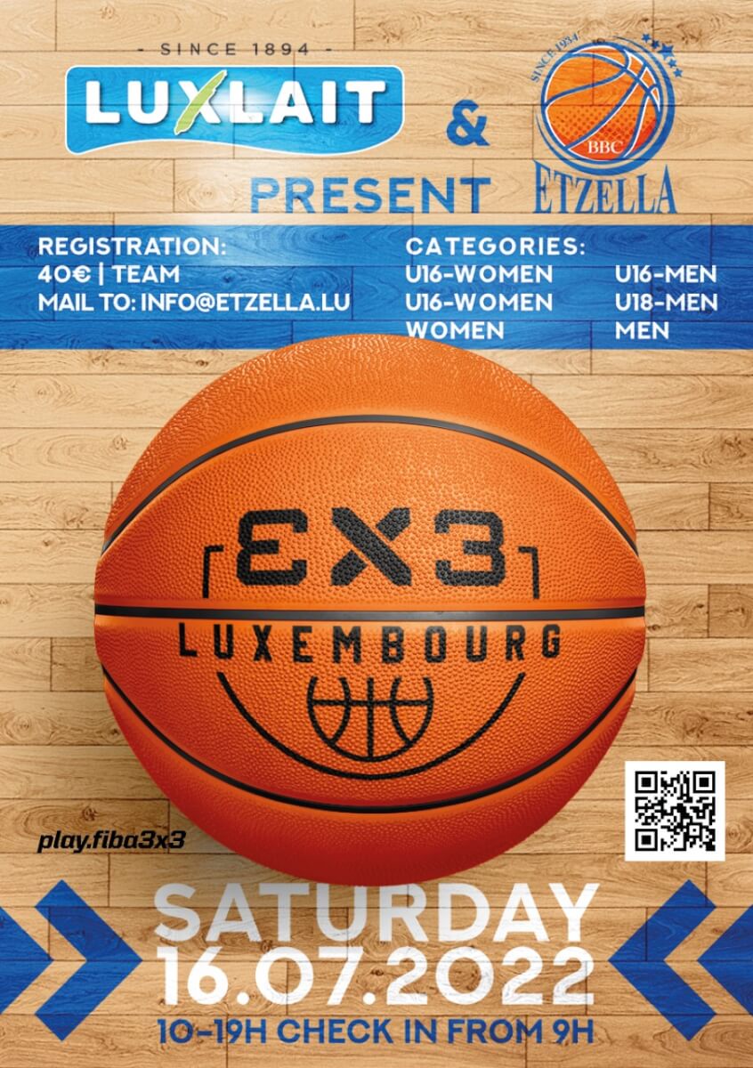 A week after 3×3 Esch Belval (9th July), another FIBA-endorsed tournament will be organized in Luxembourg by BBC Etzella Ettelbruck on 16th July. “Luxlait & BBC Etzella present 3×3” will be taking place in front of Luxlait’s headquarters in Roost.