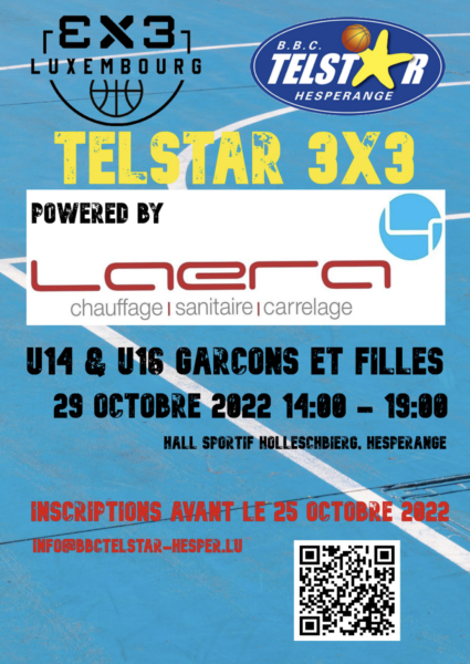 BBC Telstar Hesperange is organizing a 3X3 tournament for U14 & U16 (girls & boys) on October 29th.