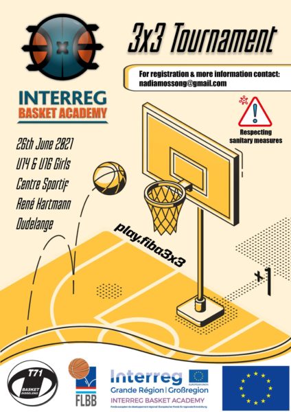 Interreg basketball academy, in collaboration with the FLBB, is organizing a 3X3 basketball tournament on June 26th for U14 and U16 girls.