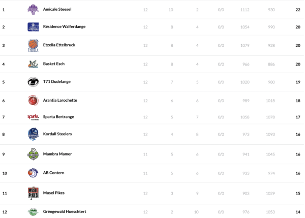 League leader Amicale Steinsel (10:2 record) is challenged on the road in Walferdange (8:4). Amicale has a 2-point lead over a trio of teams on places 2-4 in the standings. With a victory at home, the team from Steinsel could be sure to enter the winter break on the first place in the league. Etzella (8:4) will face Contern (5:6), the hosts are 10th in the standings but only 1 victory behind Arantia in 6th place. The Musel Pikes are under pressure since the team only has 2 victories and the play-off spots are slowly getting out of reach. On Saturday, the team of coach Philip Dejworek faces Sparta (5:7). After their second victory of the season, Gréngewald is trying to keep the momentum but the team needs multiple victories to make a serious jump in the standings. On the road in Dudelange, the Greens face a difficult challenge.