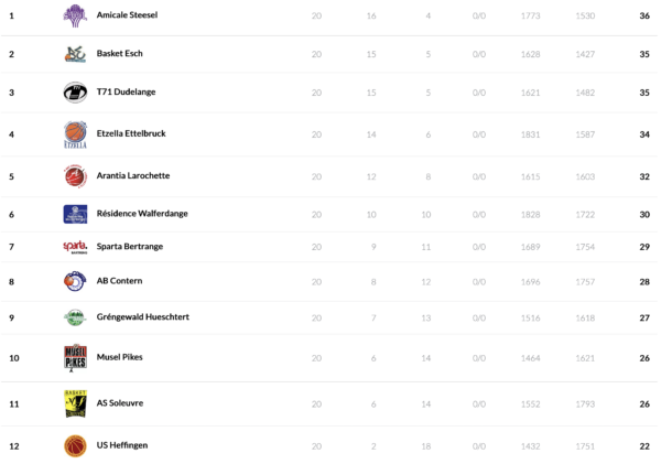 In the play-off race, Etzella is the team under pressure because they need to catch the Musel Pikes or Basket Esch. Etzella does not earn a direct comparison against either opponent and would also miss the play-offs in case of a 3-team tie so that the team needs to win both remaining games and hope that one opponent loses both games.