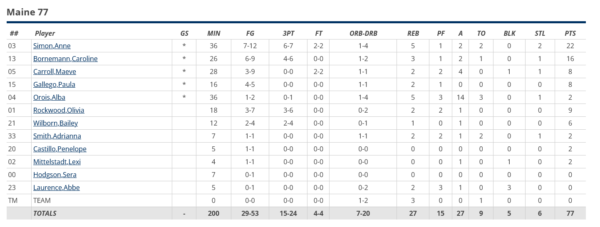 Anne Simon and her university Maine were able to beat New Hampshire 77:51 on Friday. The Black Bears were led by Simon, she scored 22 points and added 5 rebounds, 2 assists and 2 steals in 36 minutes. It was the 6th win in 15 games this season for her team.