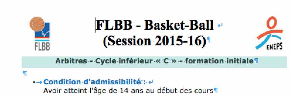 Arbitres – Cycle inférieur « C » – formation initiale – 1