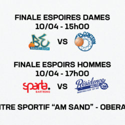 The final of the Espoir(e)s championship will be played on Easter Monday in Oberanven (gym of BBC Gréngewald Hueschtert). The... View Article