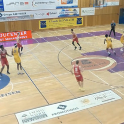 Jordan Giles (Racing) finds his teammate and national team player Gaetan Bernimont for the nice reverse layup against Larochette early... View Article