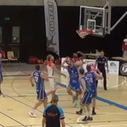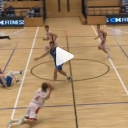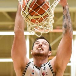 Jordan Giles finishes the fast break with authority in their blow out Victory over Telstar.