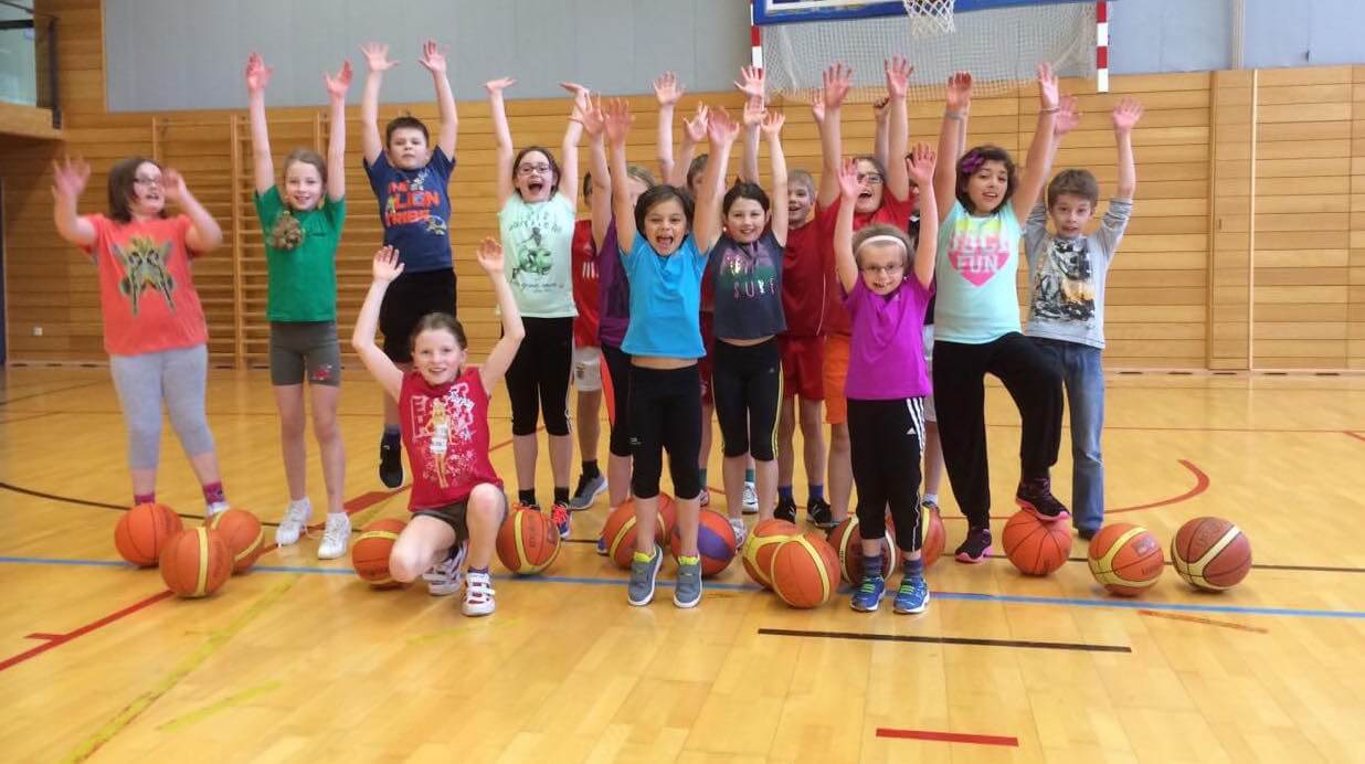 Drei Schulklassen mit jeweils 15- 16 Kindern konnten über eine Stunde die Grundlagen des Basketballs, wie Koordination, Dribbeln, Passen und Werfen entdecken. Alle haben mit viel Begeisterung mitgemacht.