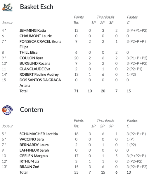 In the women’s final, Basket Esch used a strong fourth quarter to grab a 71:55 win, Kyra Coulon scored a game-high 20 points.