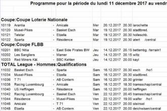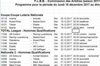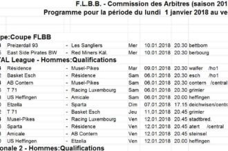 Folgend Nominatiounen hunn eis Schiedsrichter bei der FIBA kritt: 03.01.2018 Mithra Castors Braine vs Entente Sportive B. Villeneuve D’Ascq Lille Metropole (ELW/...