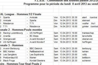 Le samedi 20 avril 2013 et le dimanche 21 avril se dérouleront les finales des Coupes des Jeunes au Gymnase de la Coque. La FLBB, désireuse de faire des «Demy ...