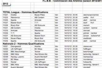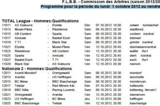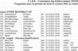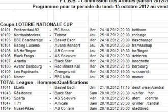 1/16-Finales Coupe Loterie Nationale matches joués le 24 ou 25 octobre 2012 Préizerdall (+10) - BC Mess Kordallsteelers (+10) - Telstar Bascharage (+10) - Baske...