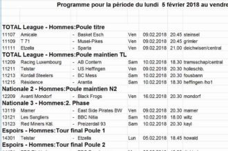 Den 14. an 15. Abrëll fënnt den traditionellen JOIN FLBB Camp 2018 fir d’Kanner aus den Alterskategorien 2004, 2005, 2006, 2007 an 2008 an der Coque statt. Weider ...