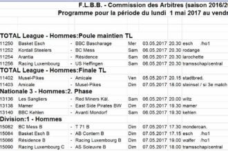 Am Fall wou et zu engem 3. Match fir de Champion vun der TOTAL LEAGUE bei den Hären kënt, gëtt dëse Match e Sonndeg den 7. Mee 2017 um 20h15 an der Haal Alain M...