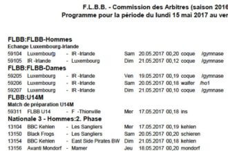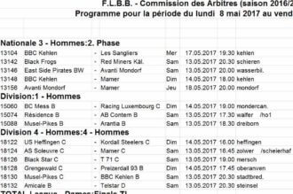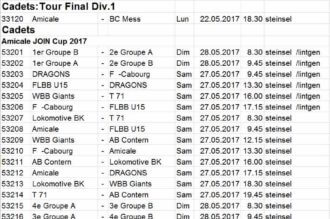 Samedi 20 mai 2017 (Coque/Gymnase): 14h00 Coupe des Fillettes US Heffingen – Musel Pikes 15h45 Coupe des Filles Scolaires Résidence Walferdange – Musel Pikes 17...