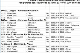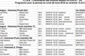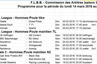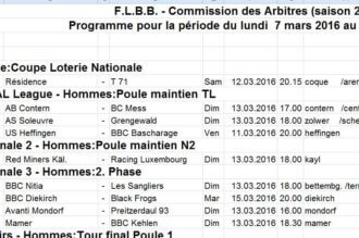 Samedi 12 mars 2016 – Arena de la Coque 15h00 Finale Coupe BASCOL: Amicale Post Basket - Team Teaching 17h30 Finale LaLux Ladies Cup Résidence Walferdange (+10) -...