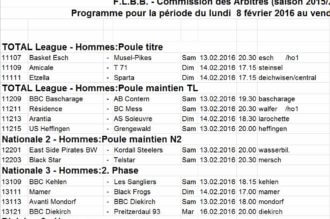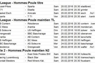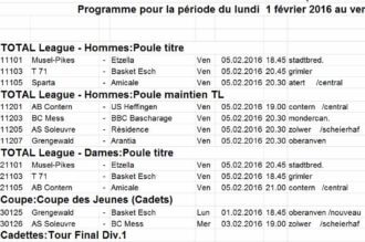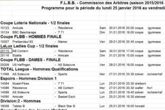 Vendredi 29 janvier 2016 Finales Coupes FLBB 2016 Samedi 30 et dimanche 31 janvier 2016 Demi-finales LOTERIE NATIONALE Coupe de Luxembourg 2016 Demi-finales LALUX Ladies Cup...