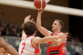 Während einer Auszeit im zweiten Viertel des Auftaktspiels zwischen Mamer und Kordall wird es laut auf der Bank der Gäste. Mamer hat sich gerade zum ersten Mal abgesetzt, Max Sch...