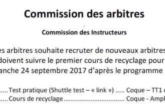 La commission des arbitres organise un cours de formation pour arbitres-débutants le 24 septembre 2017 - Détails et fiche d'inscription en annexe!Voir le PDF...