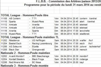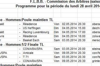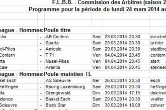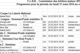 Samedi 22 mars 2014 – Arena de la Coque 13h30 Finale Coupe BASCOL:Team Teaching - Black Lions 16h00 Finale LaLux Ladies Cup: Sparta Bertrange - T71 Dudelange 20h15 Fin...