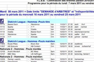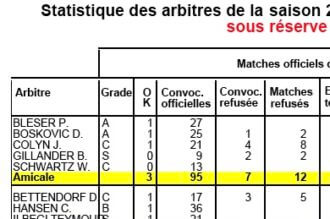 Statistique des arbitres de la saison 2010/2011 pour la période du 01/07/2010 au 10/02/2011Voir le PDF...
