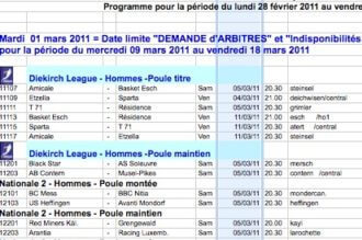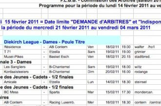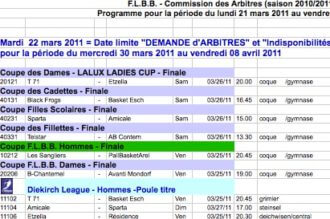 Communiqué de Presse concernant les finales des coupes FLBB, coupes des dames, catégories jeunes et du LaLux Ladies Cup les 25 et 26 mars 2011 à la Coque/Gymnase. Voir le PDF...