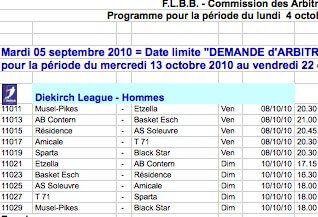 Programme des matches pour la période du lundi 27 septembre 2010 au jeudi 7 octobre 2010.Voir le PDF...