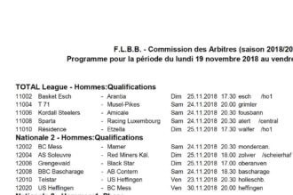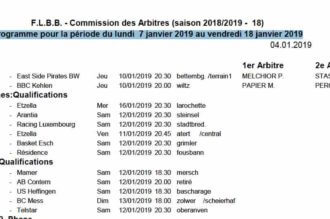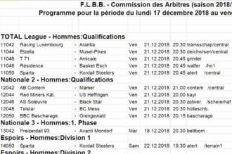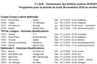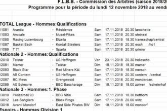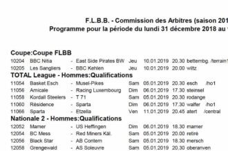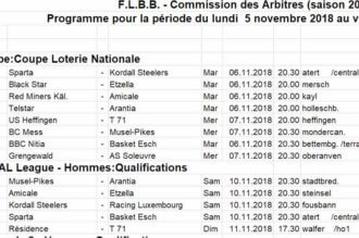 Luxembourg's FIBA Commissioner and Referees are nominated by FIBA to officiate in following Competitions in October and November 2018: 03.10.2018 ECM/QR2 10-A Ne...