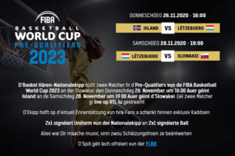 Zesummen mat RTL organiséiert d’Basketfederatioun e Gewënnspill zu den Qualifikatiounsmatcher géint den Kosovo en Donneschdeg 18. Februar um 19h00 an géint Island en Samschde...