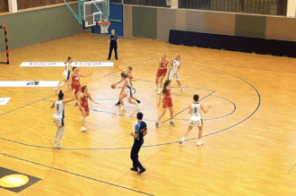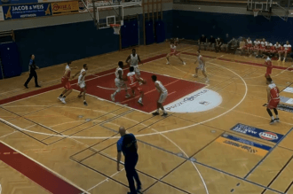 In the women's game between Basket Esch and the Musel Pikes, Léa Camporese and Michelle Dittgen combined for a nice basket. After a fancy pass by Camporese, Dittgen made the lay-u...