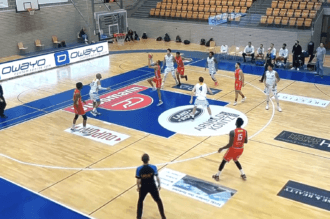 Jordan Giles (Racing) finds his teammate and national team player Gaetan Bernimont for the nice reverse layup against Larochette early in the game. ...