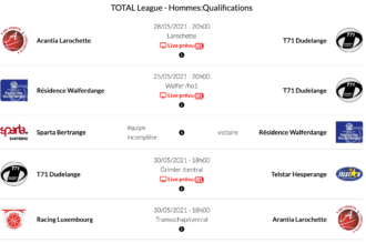 On Tuesday-evening, 1 rescheduled game was played in the men's Total League. Résidence Walfer beats T71 at home and qualifies for the semi-finals as the second seed!