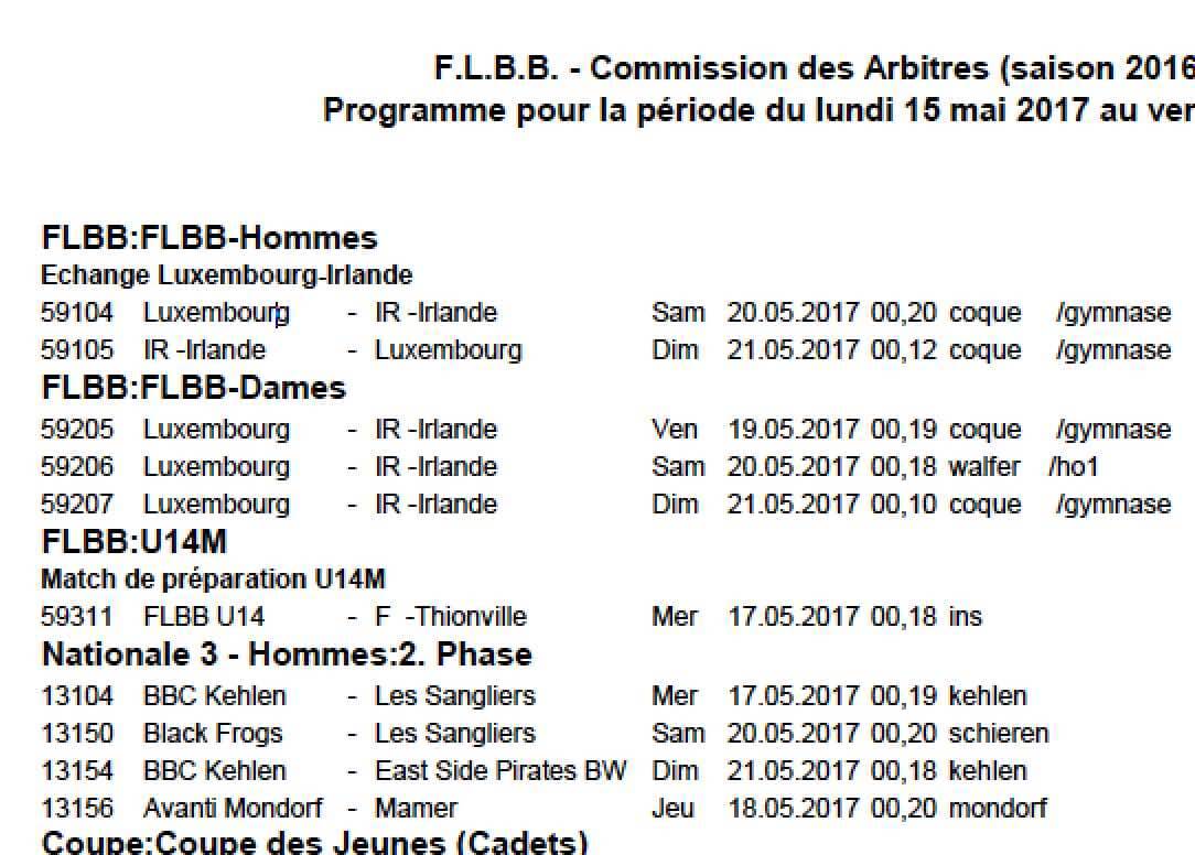 Programme pour la période du lundi 15 mai 2017 au vendredi 26 mai 2017