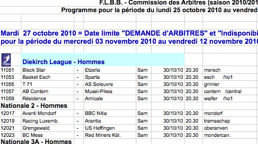 Programme pour la période du lundi 25 octobre 2010 au vendredi 5 novembre 2010
