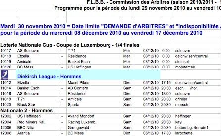 Programme pour la période du lundi 29 novembre 2010 au vendredi 10 décembre 2010