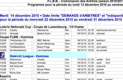 Programme pour la période du lundi 13 décembre 2010 au vendredi 24 décembre 2010
