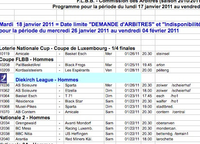 Programme pour la période du lundi 17 janvier 2011 au vendredi 28 janvier 2011