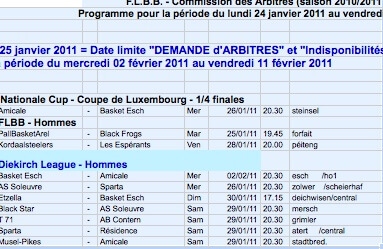 Programme pour la période du lundi 24 janvier 2011 au vendredi 4 février 2011