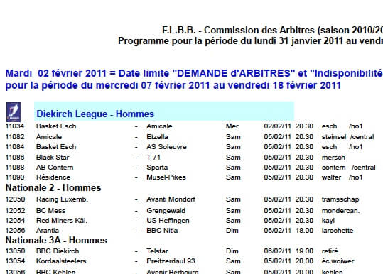 Programme pour la période du lundi 31 janvier 2011 au vendredi 11 février 2011