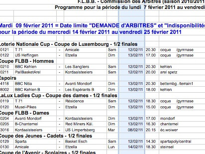 Programme pour la période du lundi 7 février 2011 au vendredi 18 février 2011