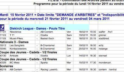 Programme pour la période du lundi 14 février 2011 au vendredi 25 février 2011