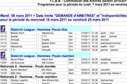 Programme pour la période du lundi 7 mars 2011 au vendredi 18 mars 2011