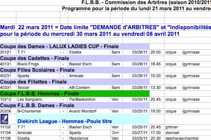 Programme pour la période du lundi 21 mars 2011 au vendredi 1 avril 2011