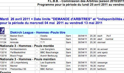 Programme pour la période du lundi 25 avril 2011 au vendredi 6 mai 2011