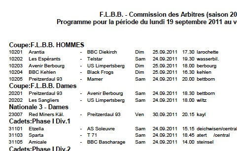 Programme pour la période du lundi 19 septembre 2011 au vendredi 30 septembre 2011