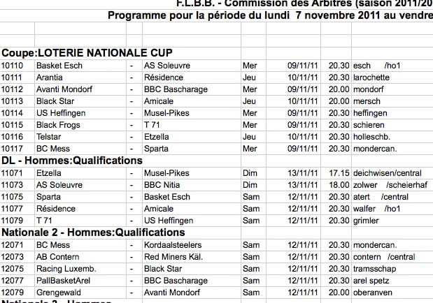 Programme pour la période du lundi 7 novembre 2011 au vendredi 18 novembre 2011