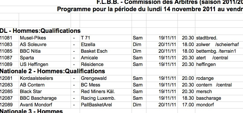 Programme pour la période du lundi 14 novembre 2011 au vendredi 25 novembre 2011