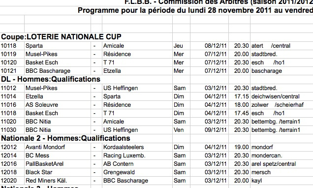 Programme pour la période du lundi 28 novembre 2011 au vendredi 9 décembre 2011
