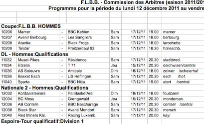 Programme pour la période du lundi 12 décembre 2011 au vendredi 23 décembre 2011