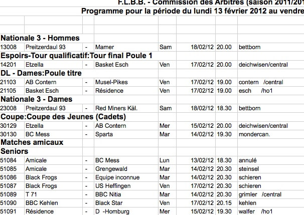 Programme pour la période du lundi 13 février 2012 au vendredi 24 février 2012
