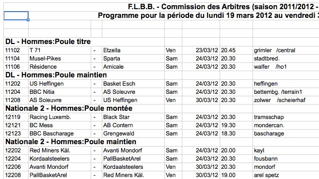Programme pour la période du lundi 19 mars 2012 au vendredi 30 mars 2012